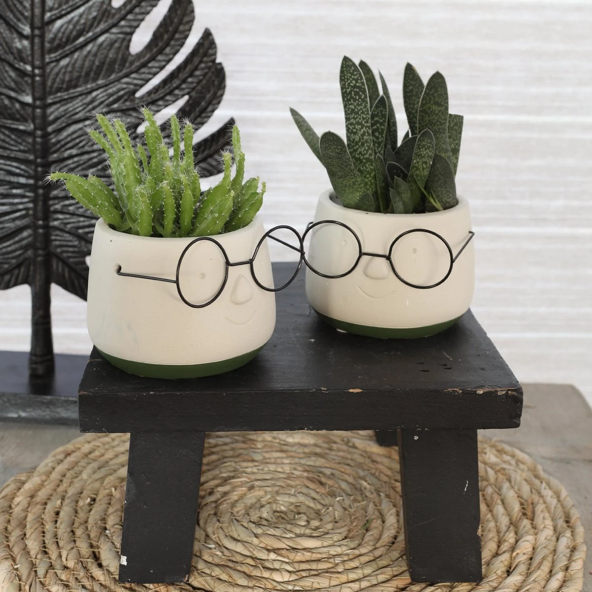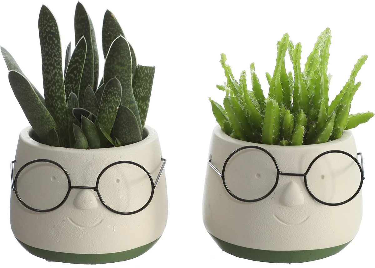 2x Bloempot Met Gezicht – Ø8 X H6,5 Cm – Bloempotten Voor Binnen Met Bril/Face/Hoofd