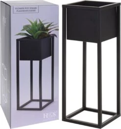 Merkloos Set Metalen Pot Op Standaard – 2 Stuks – Ø 15 X 38,5 Cm + Ø 12,5 X 33,5 Cm – Zwart