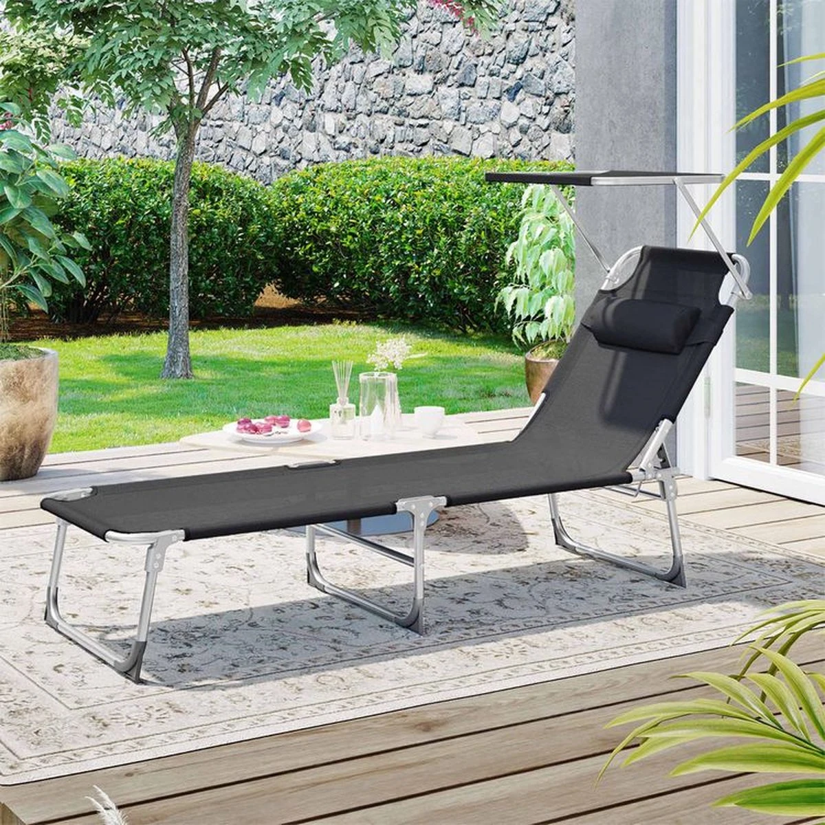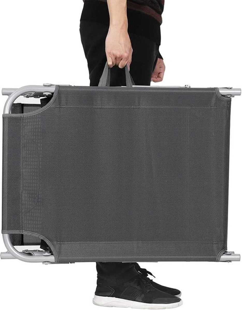 Ligstoel Met Hoofdsteun En Zon Bescherming Verstelbare Rugleuning Inklapbaar Donker Grijs Ligbed Tuin