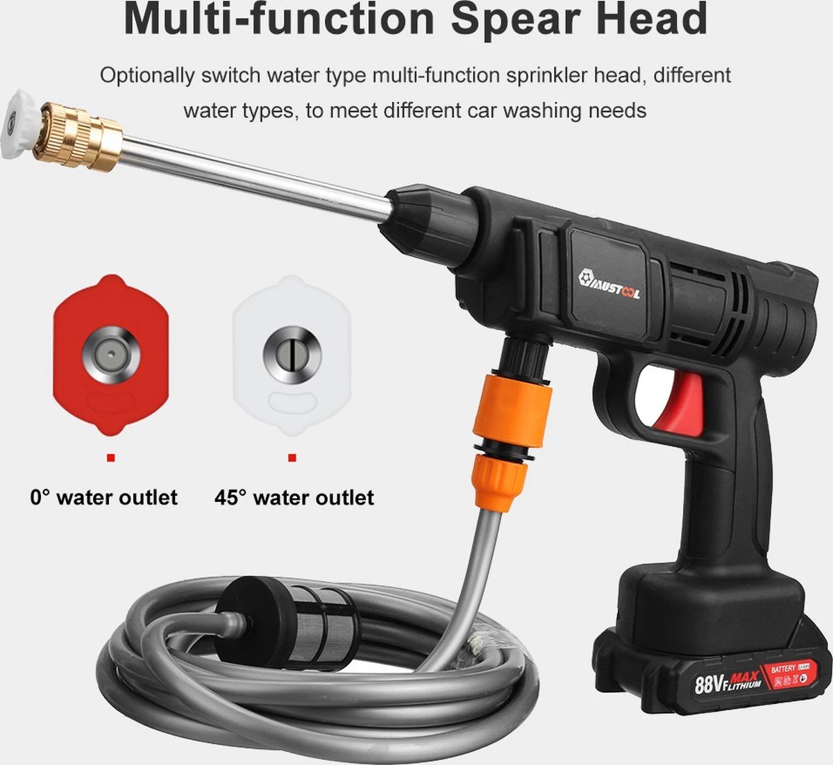 Merkloos Elektrische Accu-Hogedrukreiniger – 1.2mpa – Multifunctioneel Mondstuk – Draagbaar Oplaadbaar Snoerloos – Reinigingsspuitpistool – Met Rijke Accessoires – Voor Auto, Tuin, Terras, Raam – Zwart
