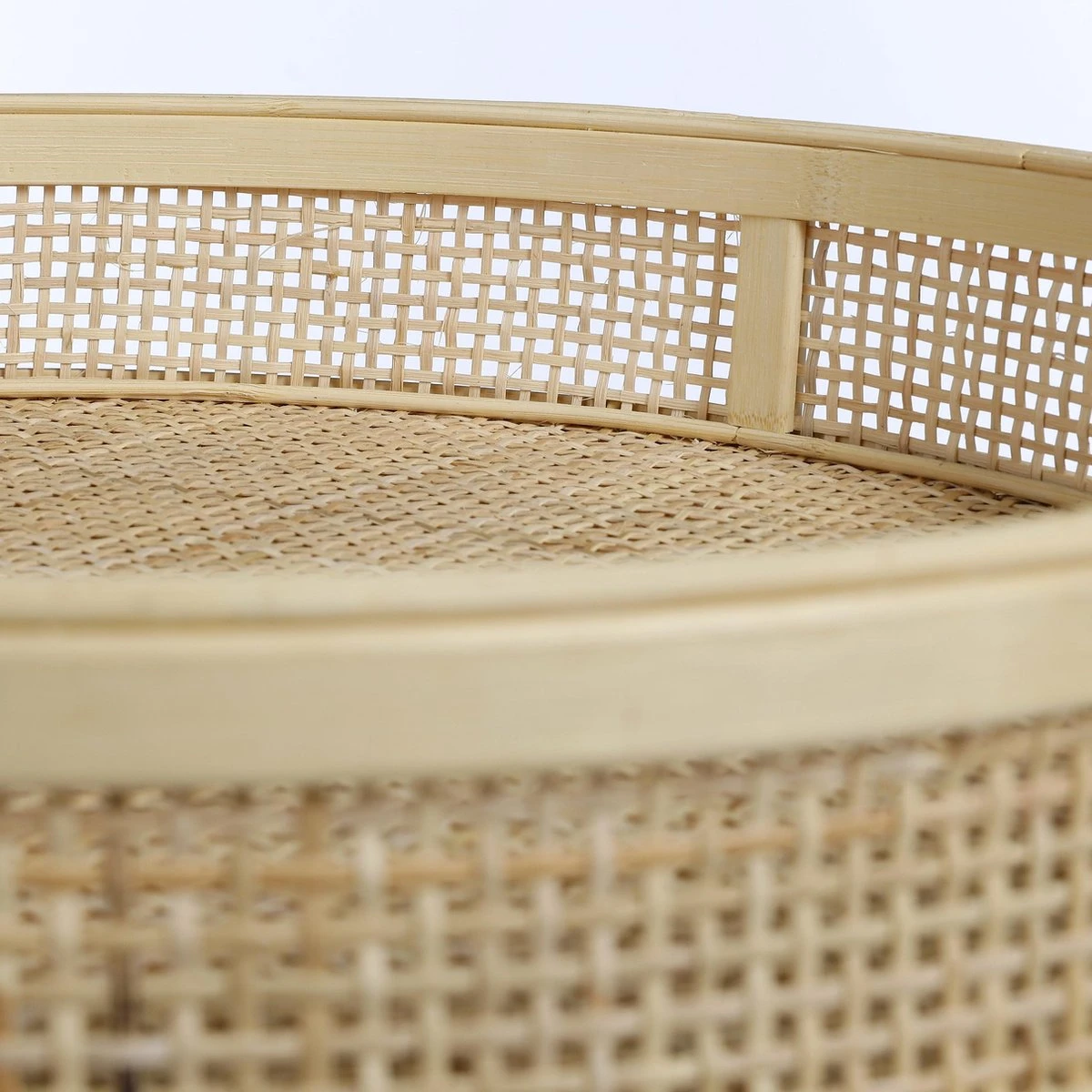 Op zoek naar een leuke bijzettafel voor op het terras of balkon? De Leandro tuintafeltjes van Mica Decorations passen door de neutrale uitstraling overal bij. Het frame is gemaakt van zwart metaal en biedt ondersteuning aan een rond blad van bamboe en rotan. Een mooie combinatie! Door de hoge rand kun je alles daarnaast veilig neerzetten, bijvoorbeeld een paar drankjes of wat leuke decoraties. De set bestaat uit twee tafeltjes die je precies onder elkaar kunt schuiven. Zo kun je, als het nodig is, van alles erop kwijt. De afmetingen van de ronde bijzettafels zijn H33 x Ø40 cm en H45 x Ø45 cm.