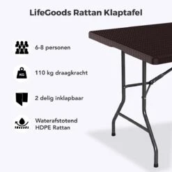 LifeGoods Klaptafel – Inklapbaar – 70x180cm – Verstelbare Vouwtafel – Weerbestendig – Zwart