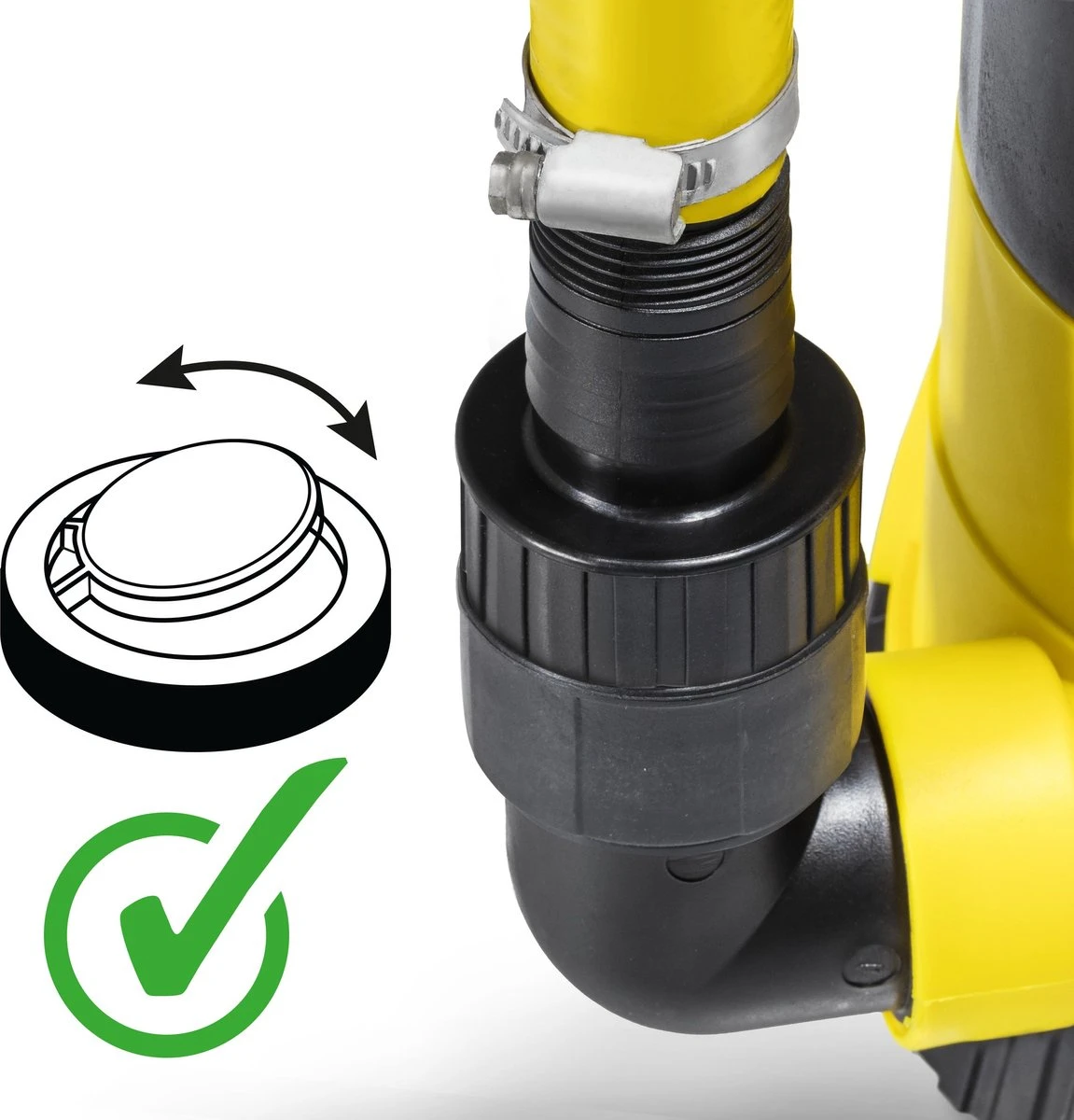 1 x TWP 4005 E 1 x verloopstuk voor binnendiameter 25 mm en 32 mm, evenals 1"-binnendraad 1 x terugslagklep met afdichting (voorgeïnstalleerd) 1 x houder terugslagklep 1 x afdichtring 1 x haakse adapter 1 x nylon touw (12m) 1 x beknopte handleiding (Nederlandse handleiding online beschikbaar)