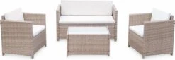 Alice’s Garden Loungeset Perugia – 4 Plaatsen – Kleine Tuinset – Wicker – Naturel/beige